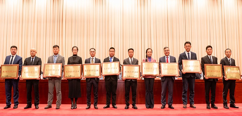总司理丁志鸿(右六)上台领取2024年度常州市数字经济树模企业