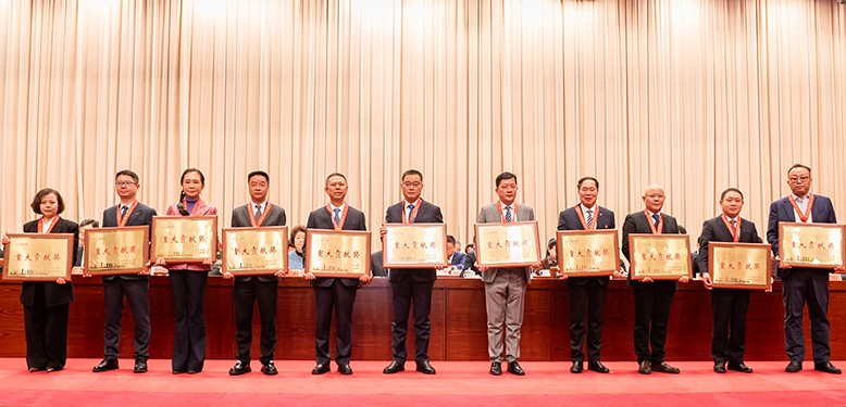 总司理丁志鸿(左四)上台领取2024年度常州市重大孝顺奖