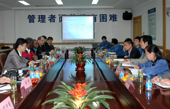 10月15日 ,, ,安哥拉国家旅游生长中心办公室主任罗德里格先生一行在中信建设集团安哥拉国家旅游区项目部司理方江生等陪同下 ,, ,来凯时最新首页登录旅行考察。。。。集团常务副总司理丁志鸿在聚会室热情接待了考察团一行。。。。