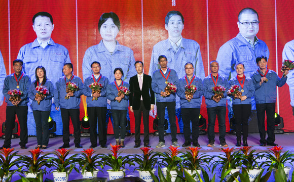 十大功勋员工、十大优异员工颁奖、给董事长送礼物精彩瞬间